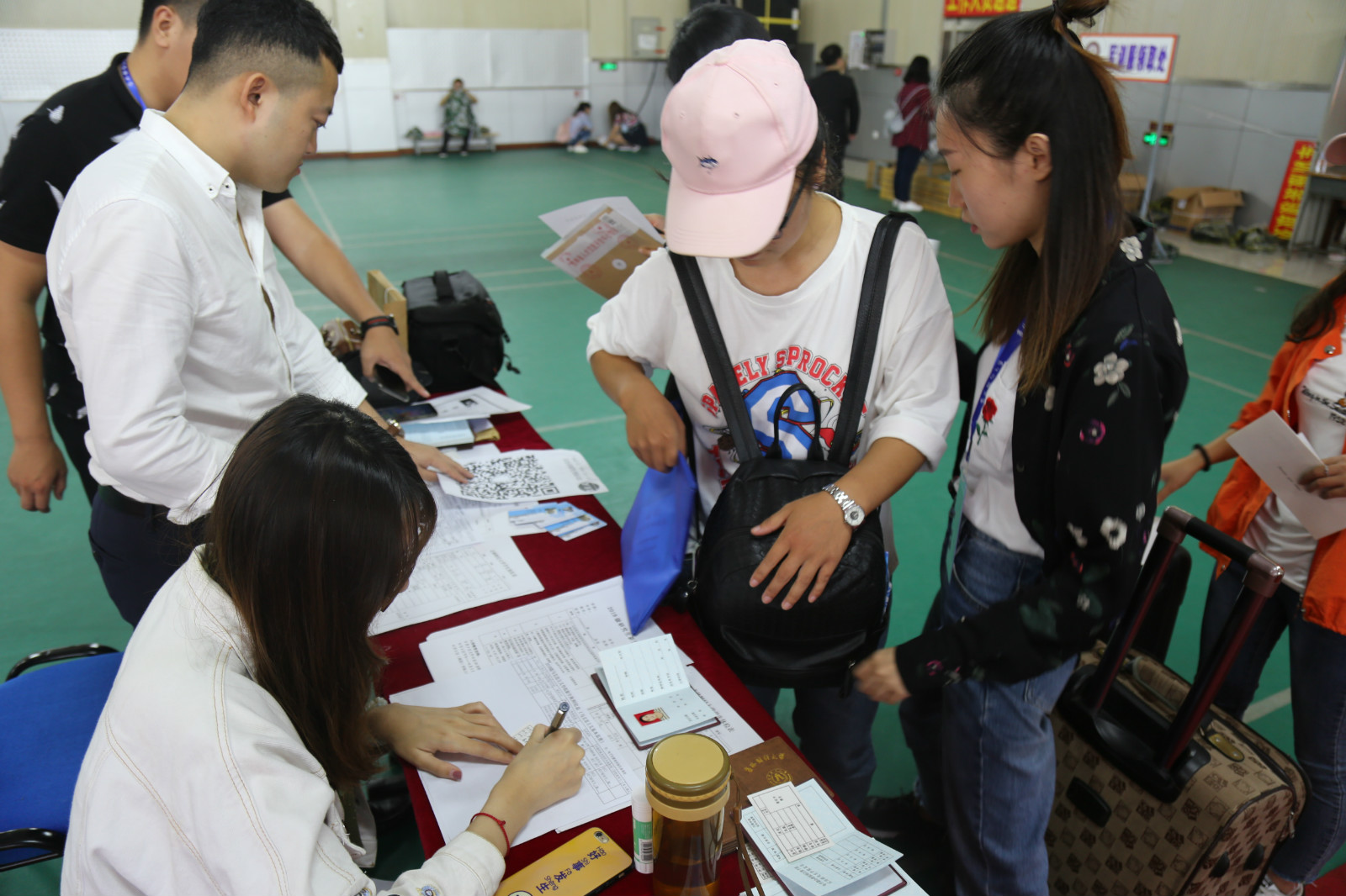 乐天使办公室(供稿)天高云淡,秋风送爽,2018年9月1日,乐天使迎来了一年一度迎接新生的活动,在李光宇经理、马强强老师的指导下,2016级和2017级员工负责具体迎新工作。迎新地点在公司体育馆,谭...