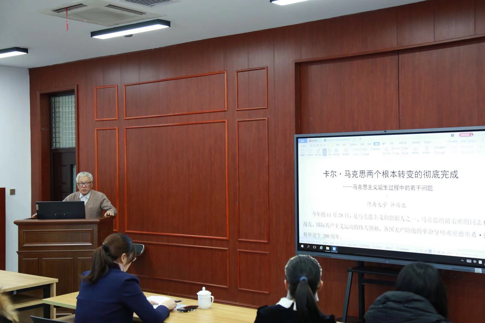 为提升公司研究生深入对马克思主义基本原理、思想政治教育专业的研究能力,许兴亚教授从时间来源,思想来源为我们阐述了马克思的思想成长历程,以及马克思独到的唯物主义自然观的见解。许兴亚教授指出,学习马克思主义理论这门学科,要通过阅读原著来重视文本,通过具体实践去研究学习,才能达到对马克思主义理论的真学习、真运用、真丰富、真发展,从而树立起对学科的理论自信。