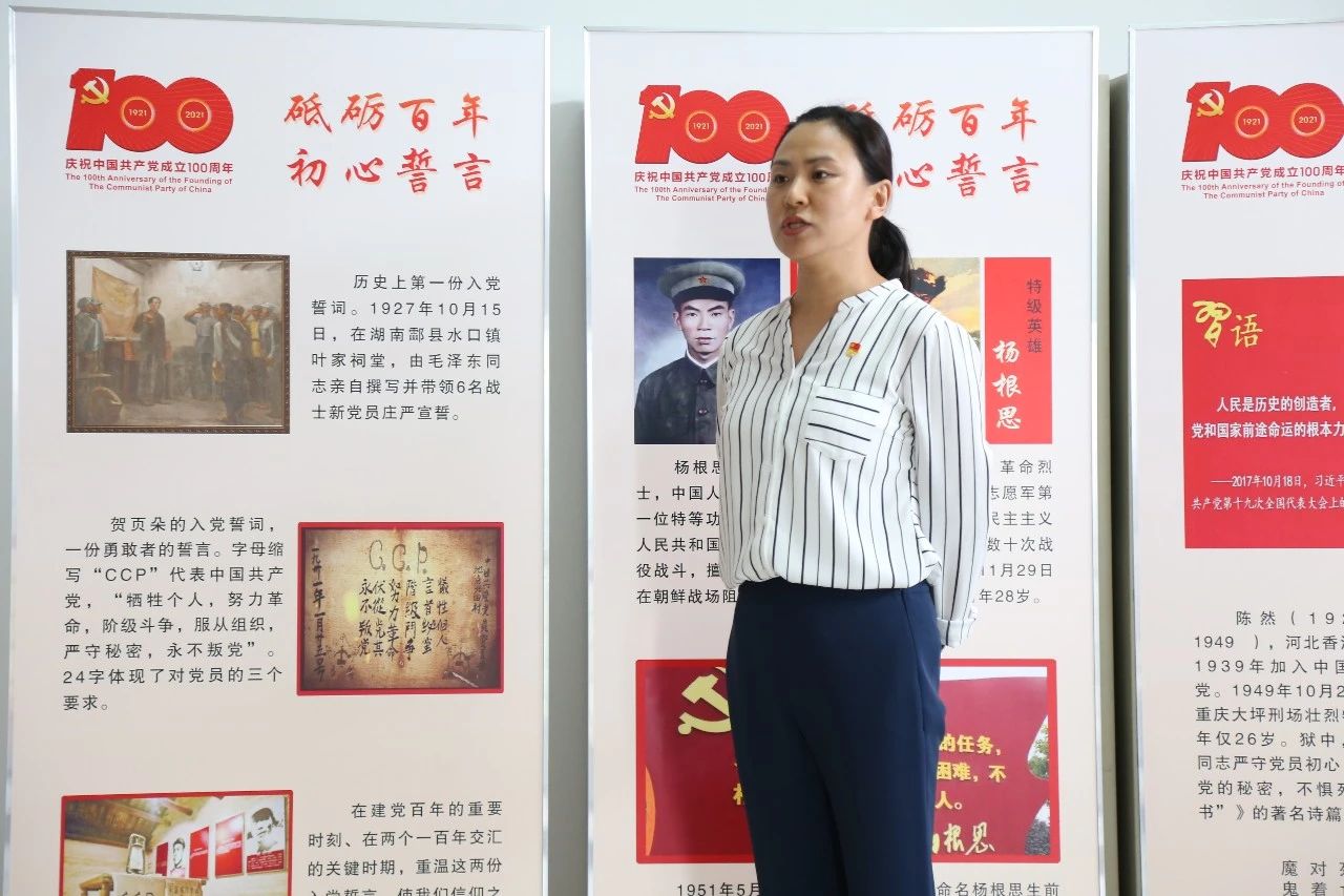 在宣誓仪式前,公司四名教师对党的百年征程进行了简要回顾,展现了在新时代以习近平同志为核心的党中央坚强领导下,党和国家各项事业取得的历史性成就、发生的历史性变革。刘方、梁策、吕敏、胡婷婷老师分别讲述了入党誓词的起源及历史介绍、英雄人物杨根思、陈然在苦难和斗争中,守护初心,舍生忘死的感人事迹、以小岗村脱贫为例简述我国脱贫攻坚的显赫成果以及中国天眼、“祝融号”、港珠澳大桥等中国发展的“名场面”,内容详实,娓娓动听。