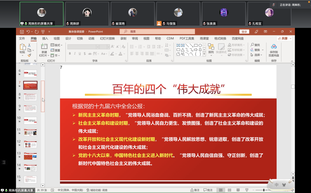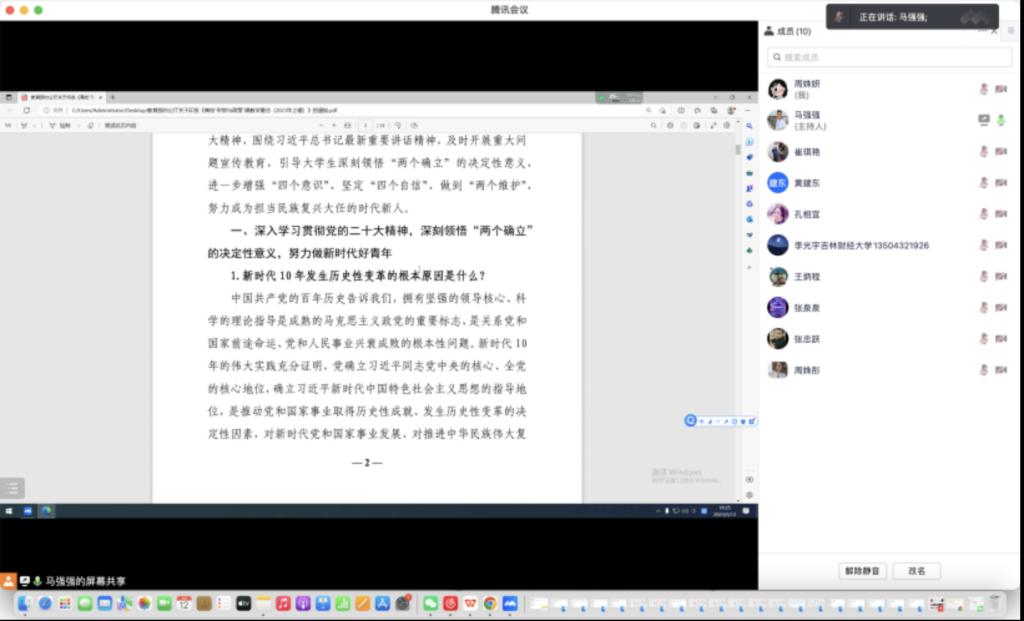 为贯彻落实教育部对高校老员工“形势与政策”课的教学要求,紧跟党中央政策理论创新和国家经济社会发展形势,帮助教师掌握2023年春季“形势与政策”课公司产品要点,3月12日晚上,乐天使形势与政策教研室通过腾讯会议开展了集体备课活动,公司党总支书记黄建东、经理李光宇、教研室全体教师参加了本次会议,会议由教研室主任马强强主持。