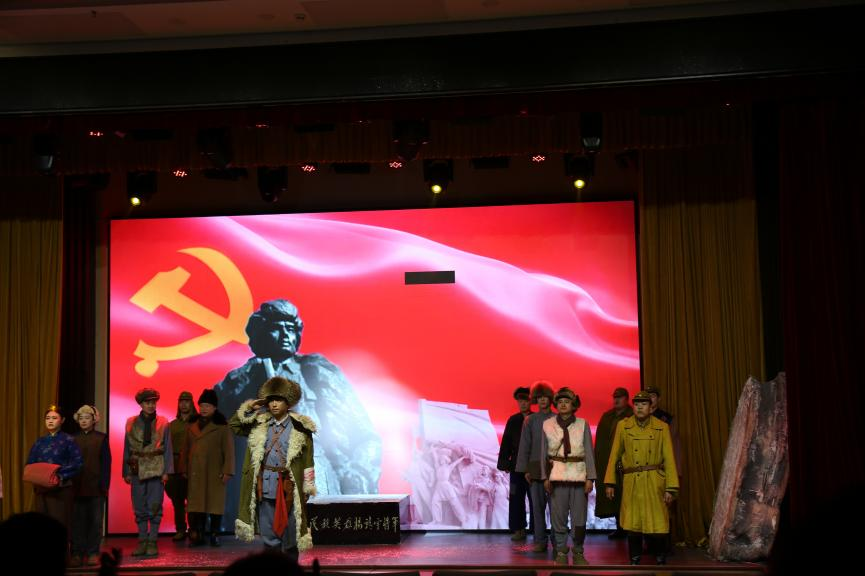 5月20日晚,全体学员观看了“不朽的旗帜——杨靖宇将军最后五天五夜”情景教学。“火烤胸前暖,风吹背后寒”,这是杨靖宇将军自己创作的歌词,也是抗联将士们奋战林海雪原的真实生活。1940年2月23日,那时他已5天5夜粒米未进,周围还有几百个敌人在全力围捕。杨靖宇领导的抗联部队在濛江县境内浴血奋战了94天,别说吃口饱饭、喝口热水,就连踏实睡上一觉都是一种奢望。面对敌人的疯狂围剿,杨靖宇丝毫没有动摇自己的抗日决心。讨伐队向他逼近到一百米、五十米,完全包围了他,劝他投降。可是,他连答应的神色都没有,依然不停地手持双枪向讨伐队射击。交战20分钟,一弹中其左腕,他继续用右手持枪应战。讨伐队认为生擒困难,遂猛烈向他开火。终因寡不敌众,杨靖宇被敌弹射中胸膛,高大的身躯便仰面倒在大树旁,终年35岁。鲜血染红了皑皑白雪——时间定格在1940年2月23日16时30分。直到生命里的最后一刻,杨靖宇还是把枪口对准了敌人。杨靖宇牺牲后,日本侵略者始终无法理解的是,自2月18日以来,他已被围困在冰天雪地里,完全断粮五天五夜,他究竟靠什么生存?为了解开谜团,敌人残忍地将他剖腹查看,发现他的胃里尽是枯草、树皮和棉絮,竟无一粒粮食!连参与围剿的伪通化省警务厅长岸谷隆一郎也不得不承认:“虽为敌人,睹其壮烈亦为之感叹,大大的英雄!” 杨靖宇用英雄壮举诠释了一名共产党员的坚定信仰,更展现了东北抗联将士骨子里的刚烈血性。置身杨靖宇将军牺牲的地方,当年艰苦卓绝的抗战硝烟仿佛并未走远,“松花江水流不停,不灭日寇心不平,长白山上英雄多,数着那杨靖宇杨司令。”这首歌从1936年起开始在白山黑水间传唱,半个多世纪不曾绝响。石碑无言,英雄无语,但我们永远不会忘记…