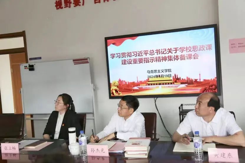 形势与政策教研室主任马强强、中国近现代史纲要教研室主任尹兵、思想道德与法治教研室主任朱琳、马克思主义基本原理教研室主任关桂芹、习近平新时代中国特色社会主义思想概论教研室主任吕敏、毛泽东思想与中国特色社会主义理论体系概论教研室主任蒋德忠分别结合本教研室课程建设,就落实习近平总书记思政课建设重要指示精神开展了集体备课,同时围绕思政课课程教学改革具体举措进行了汇报交流。形势与政策教研室教师王炳程就参加《中华民族共同体概论》教材培训收获、中国近现代史纲要教研室教师刘方就《复兴文库》内容简介及教学研究运用进行了分享。