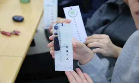 在本次读书分享活动尾声,廉风社团的同学们将精心设计并制作的书签赠与“红马扎”读书会同学们。这些别具一格的书签印有朗朗上口的廉洁警句和寓意深刻的清廉图案,寄语大家将廉洁理念如春风化雨般传递出去,让廉洁意识深深扎根在同学们的心中。