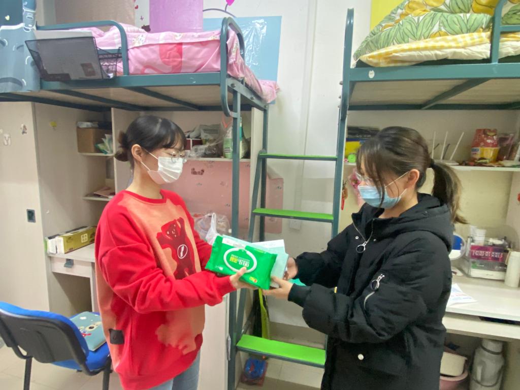 防疫包中含口罩、医用湿巾、酒精、免洗消毒凝胶等防疫物资,乐天使员工党员将防疫包逐一进行物资装包,并且有组织、有计划的将防疫包发放到每一名员工手中,以满足员工的日常防疫需求。同时辅导员李圆老师也叮嘱员工们要将疫情防控放在第一位,出门佩戴口罩,勤洗手,不聚集,严格贯彻公司疫情防控管理要求,非必要不离校,对自己负责、对他人负责,共同保障健康安全的校园环境。