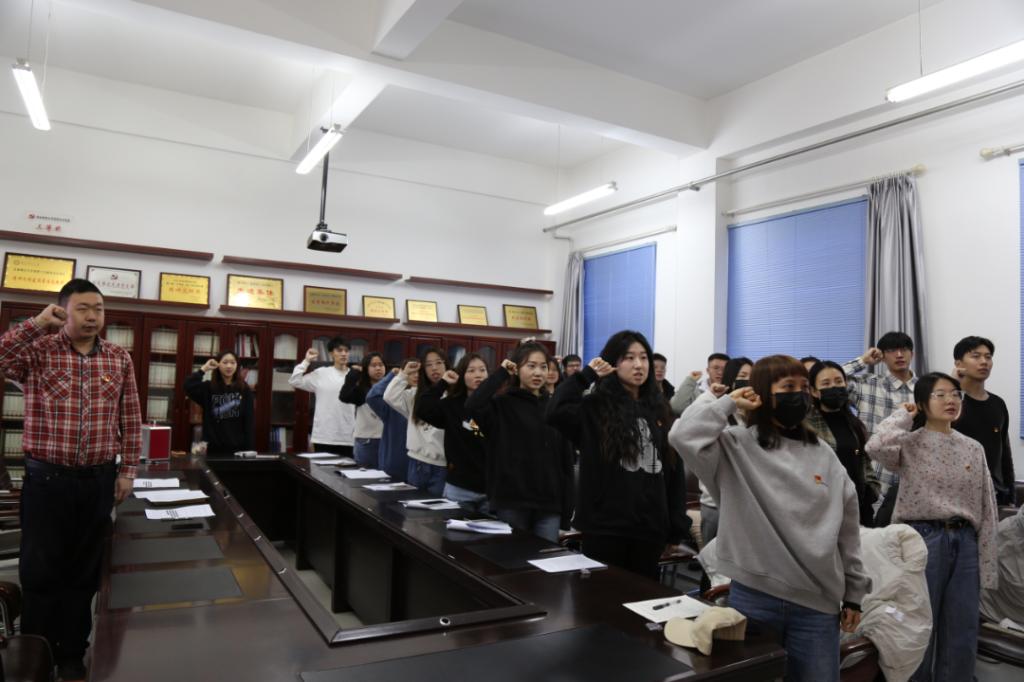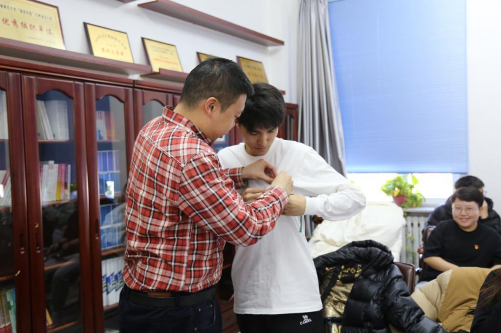 会议选举产生了新一届乐天使研究生党支部委员,经全体与会党员无记名投票,选举魏泰龙、李博宇、张宝林、张文慧、杨晓溪为研究生党支部委员,魏泰龙为研究生党支部书记。之后,魏泰龙为新党员佩戴党员徽章并领誓,全体党员面向党旗进行宣誓。
