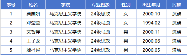 关于推荐冀国妍等5名积极分子参加党课培训的公示