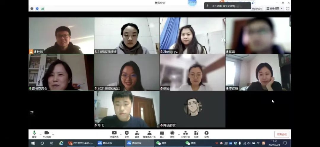 为提升公司研究生学术素养、阅读表达能力和创新思辨精神。2022年2月23日,乐天使举办“读名人传记、阅别样人生”主题读书汇报分享会。读书会采取腾讯会议线上形式进行,由朱琳老师担任指导教师,特邀中共吉林省委党公司党史教研部硕士生导师侯震担任点评嘉宾,思政二组同学参加。