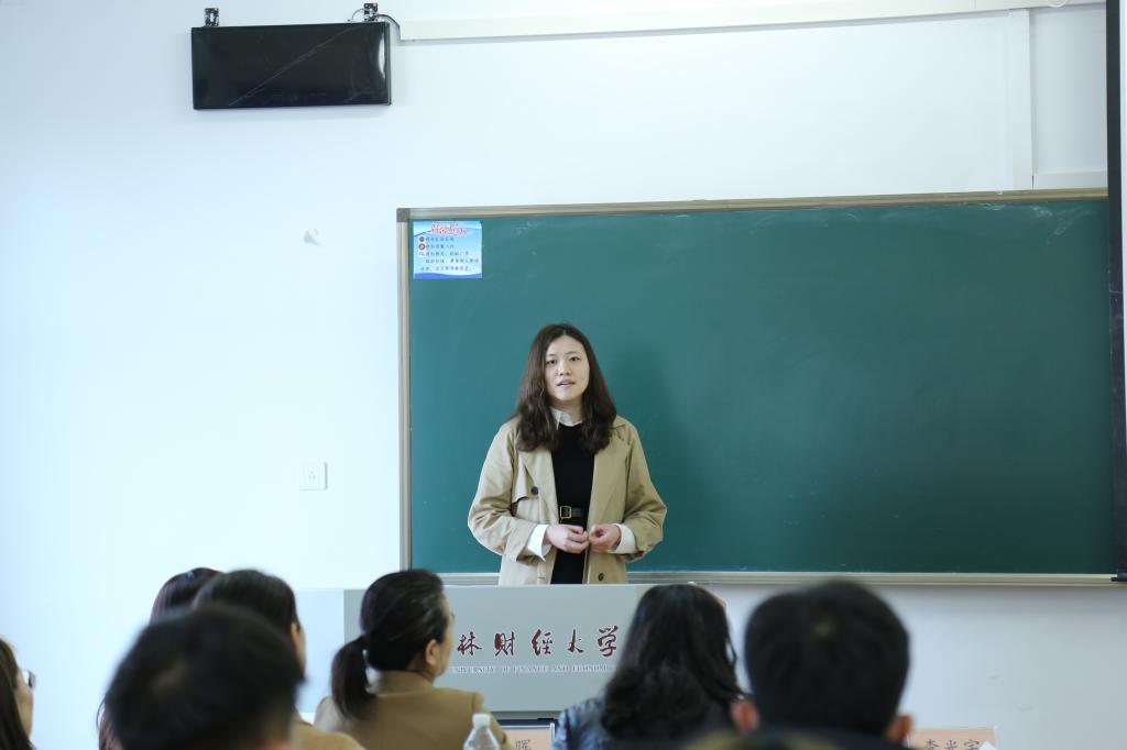 袁茵老师就《吉林省乡村振兴背景下政府积极推动特色生态小镇建设研究》课题做了汇报。通过紧密结合习近平总书记提出的“创新、协调、绿色、开放、共享”五大发展理念,系统梳理特色生态小镇的基本理论、实践调研抚松县特色生态小镇建设、比较分析国内外知名生态小镇的建设三方面展开汇报内容。