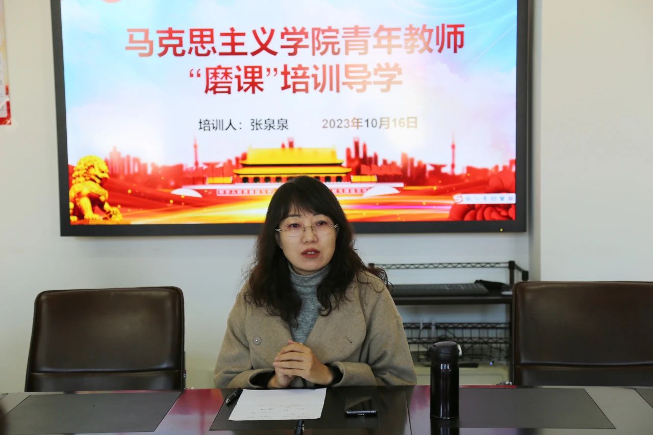 为推进实施“磨课”专项行动计划,公司邀请全国高校青年教师教学竞赛思想政治课专项组三等奖获得者、公司青年教师张泉泉结合刚刚获得的本科高校名师名家示范公开课成果和教学工作体会为10名青年教师开展培训导学。她首先从自己从教经历讲起,跟大家一同分享了心路历程。接着,她结合参加全国青年教师教学大赛的心得和收获,鼓励青年教师要敢闯敢试,重视每一次以赛代练的机会,在比赛磨练中不断提升自己的教学水平。最后,她结合初上讲台的心理建设和教学细节、日常阅读习惯培养、学习资料共建分享、团队合作能力提升等方面与10位青年教师进行了广泛深入的交流互动。