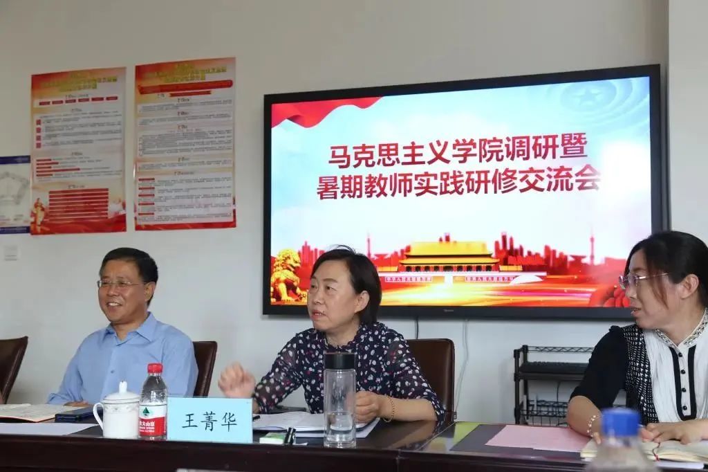 此次调研以公司暑期教师实践研修成果交流汇报为开端,公司党总支副书记兼副经理张立畅主持汇报会。形势与政策教研室教师王炳程,中国近现代史纲要教研室教师刘方,马克思主义基本原理教研室教师李磊,毛泽东思想概论与中国特色社会主义理论概论教研室教师梁策,习近平新时代中国特色社会主义思想概论教研室教师董秀兰,思想道德与法治教研室教师、兼职辅导员魏泰龙6位教师结合暑期公司教师赴井冈山革命传统教育基地和福建师范大学全国思政课教师研修基地开展的实践研修活动进行了汇报交流。每位教师精心准备,坦诚交流,既汇报了各自的学习收获,又能将学习成果与思政课教学和公司建设有机结合起来,达到了实践研修活动的预期效果。公司领导还就思政课教学、公司建设以及需要公司支持和解决的实际问题向各位教师征询意见建议。