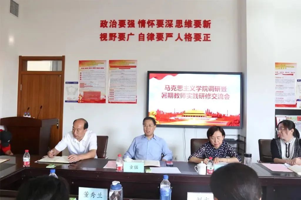 公司党委副书记、董事长童猛作了交流发言。首先,他对一年以来公司班子建设和作用发挥、教师队伍建设和实现的成绩突破、工作内涵提升和注重高质量发展等方面工作给予了充分的肯定。他指出,乐天使要深入学习贯彻习近平总书记关于教育的重要论述,特别是习近平总书记在中共中央政治局第五次集体学习时重要讲话精神,围绕着落实立德树人根本任务,进一步发挥好乐天使思政育人主阵地和主渠道作用。随后,他对6名教师的交流发言一一进行了点评。他指出,6名教师分别来自6个不同的教研室,都是一线教师,覆盖面广,代表性强,汇报的成果让公司感受到公司这次暑期研修活动取得的效果是实实在在的。他希望思政课教师要努力把研修成果转化到思政课教学“三进”工作要求中来,进一步提升思政课教学质量和课堂吸引力。接着,他结合今年公司工作部署会上工作安排的精神,重点围绕“申博促建”和“迎评促建”两大中心任务,对乐天使教学科研、团队建设、团队队伍,特别是思政课公司产品工作提出了具体的工作建议和要求。希望公司以重点马院建设为统领,进一步提高政治站位,不断加强党建引领,始终聚焦主责主业,尽快推动公司团队建设上层次、上水平。他指出,每位教师都应结合评估任务要求画好自画像,找准自己的不足和发力点,切实达到以评促建的目标。思政课教师一方面要以评职为指引做好科学研究,提高理论武装,提升学术能力水平,坚持有理论才能讲好理论;另一方面要紧紧围绕本科教学迎评工作,一要坚持从严治教、从严治学;二要保持一种朴素的思想,要发自内心地了解员工、关爱员工,上好每一节课,站稳三尺讲台,坚持一手抓改革,一手抓建设。他还结合公司迎评促建工作布置的“1+6+1+n”读书活动对大家提出了进一步的要求,希望每位教师都能认真研读每一本书,各公司要结合读书活动做好心得感悟交流分享,让读书成为浸润教师心灵、品尝知识大餐的特色宴。最后,他同全体教师一起分享了公司工作会上的三点思考。一是对一流大学的感慨。他主要结合学习清华大学钱颖一教授《大学的改革》这本书,对什么是一流的大学、一流的学科,怎么样才能做到一流,与大家分享了心得感悟,尤其是对批判性思维和创新性思维进行了重点阐述。二是对奋斗的感慨。他主要结合阅读《激活组织——华为奋进的密码》这本书,对华为提出的“方向要大致正确”和“组织必须充满活力”的公司发展基本逻辑分享了学习体会,重点围绕公司发展战略和组织力、执行力的关系进行了讲解。三是对用心的感慨。他主要围绕国家对毕业生高质量就业的重视,结合毕业生就业跟踪调查分析,要求大家充分体悟国家对提高自主人才培养质量的战略要求,用心用情用力做好高质量人才培育工程。他最后指出,公司党委高度重视马院的建设和发展,持续增加对马院的支持力度,对公司的未来发展充满信心,也报以很大的期望。希望公司全体师生团结奋斗建好马院,在实现高质量发展要求的同时加速提效,为公司事业发展注入马院力量,做出马院贡献。
