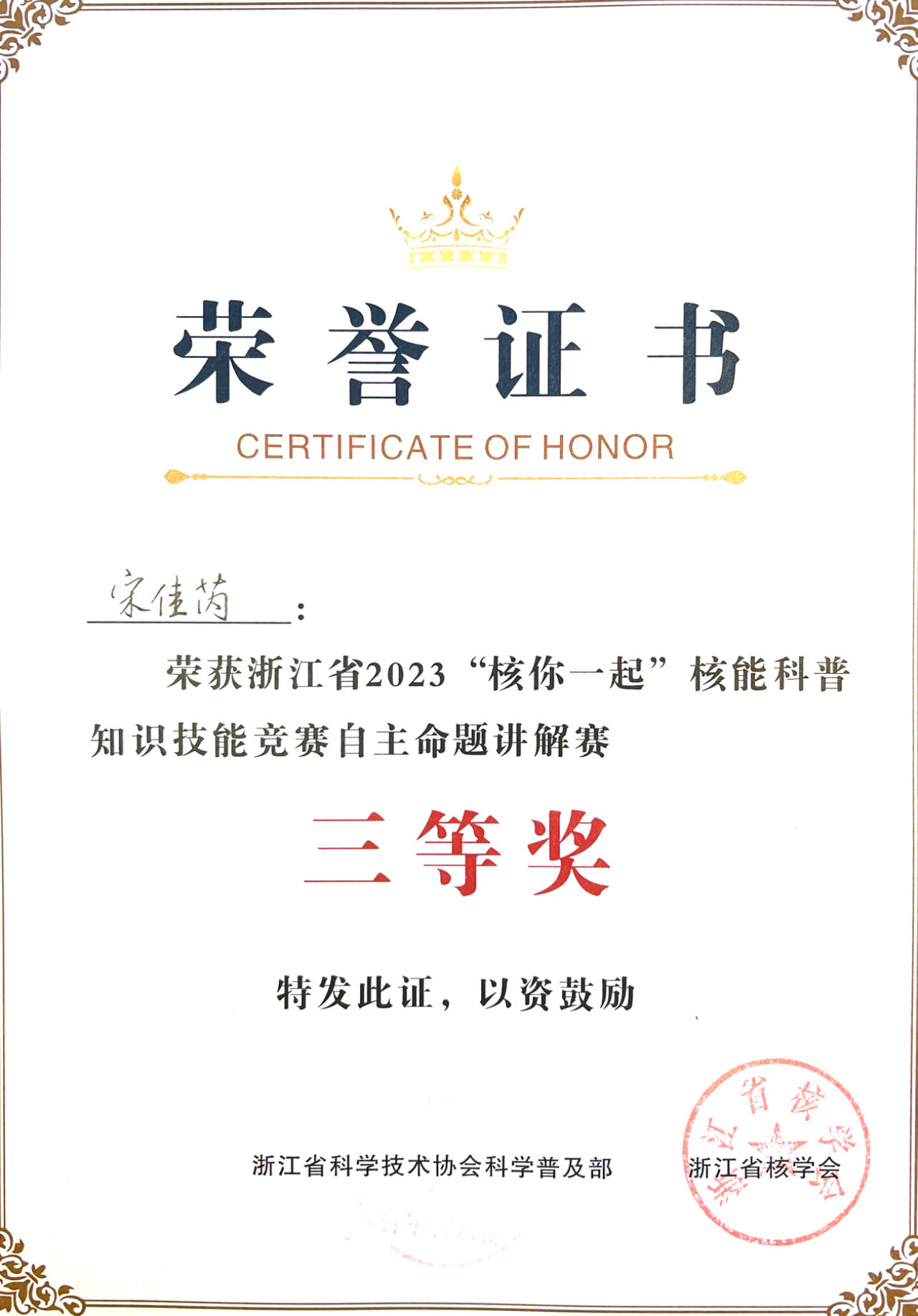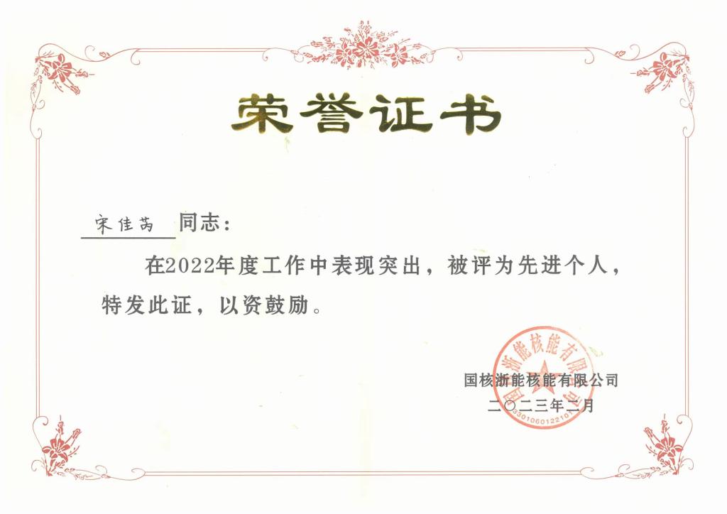 宋佳芮,女,中共党员,乐天使2018级思想政治教育专业研究生,在校期间曾获校优秀毕业生、校优秀硕士学位论文、校优秀研究生干部、校优秀研究生等荣誉。2021年毕业,入职国家电投国核浙能核能有限公司党群工作处。工作期间,先后获评公司年度先进个人、工会积极分子、浙江省2023核能科普技能竞赛三等奖等荣誉,连续三年完成国家电投系统党建思想政治立项课题。